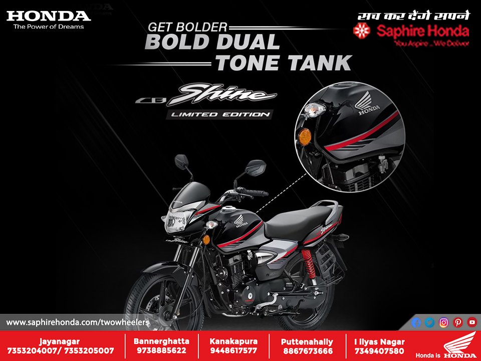 CB Shine | Honda Bikes Showroom in Bangalore | Saphire Honda Two Wheelers